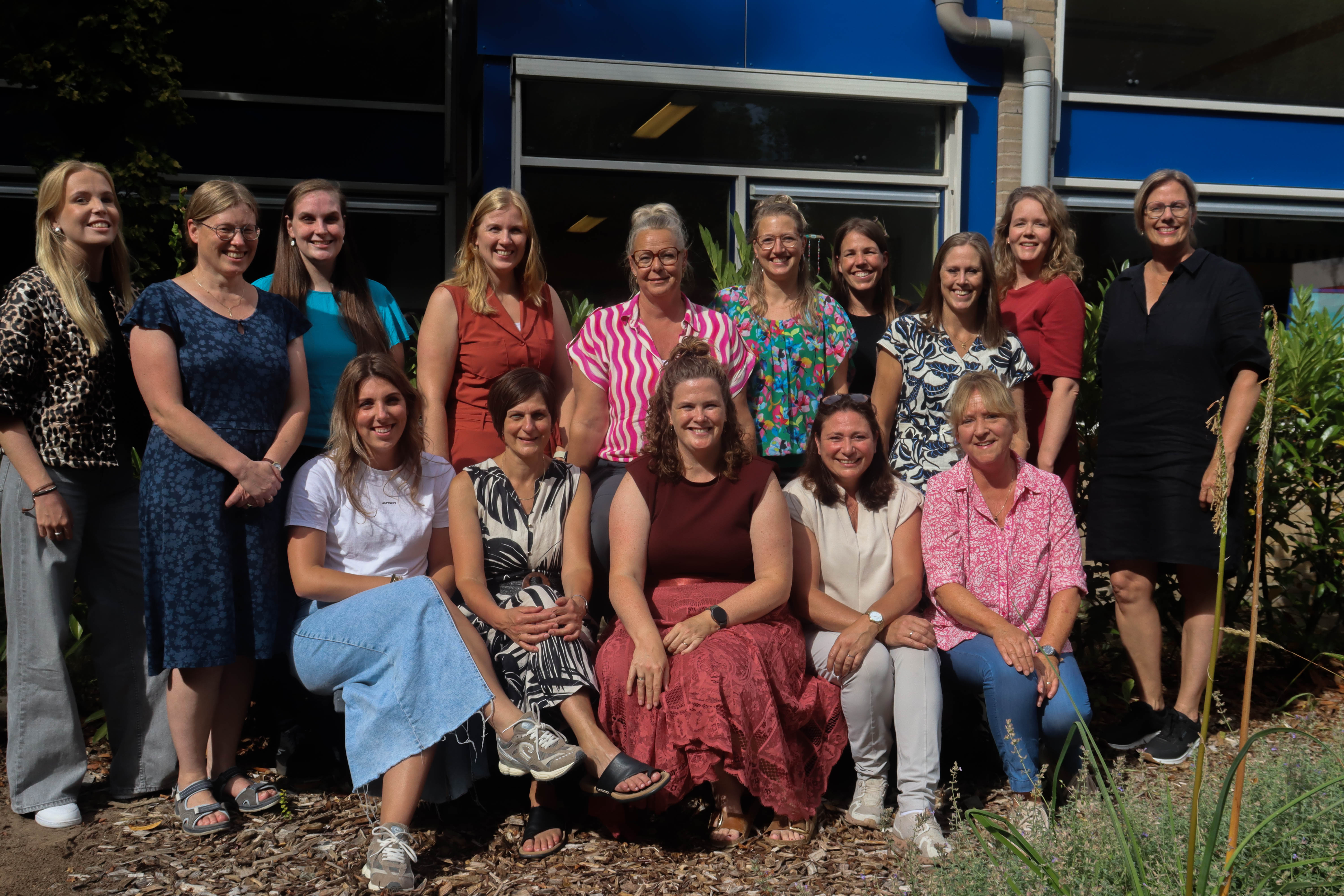Boven van links naar rechts: Nova Schroer, Germaine Anema, Tamara Stern, Marleen Hubers, Caralijne van der Heide, Sanne Teunissen, Bernadet Geurtsen, Mariska Westerdijk, Maartje Pen en Marieke Scheuneman.